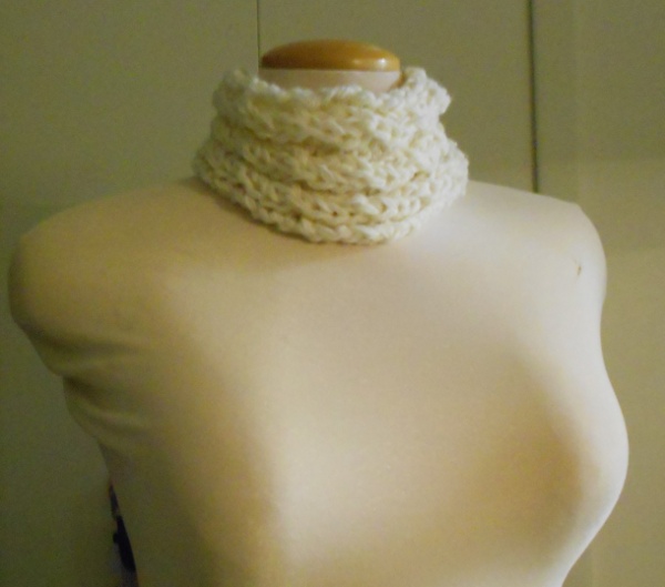 Now you need eyes and a mouth which is done with simple magic circles. Make a loop around your fingers and make 6 Single crochets into the loop. Pull the end tight to close the hole. slip stitch into the beginning sc to close the gap. Chain 1, and make 2 single crochets into each stitch and once again make a slip stitch to close the gap. Make three and sew them onto the scarf for a cute spooky face.
